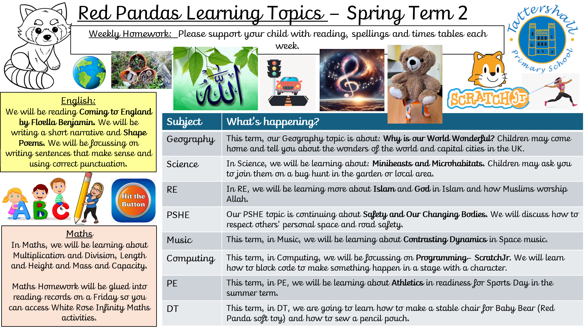 - Practising weekly spellings for a spelling test the following Friday. (These are glued inside your child's reading record).