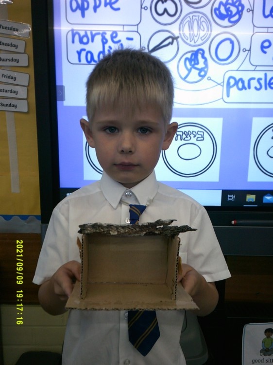 In Class 2, we have been learning about the Jewish festival Sukkot. During Sukkot, Jews build Sukkahs to live in to remember the time when their ancestors travelled through the desert towards the Promised Land. We went around the school grounds to collect our natural materials to decorate our own Sukkahs.