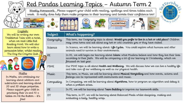 - Practising Maths skills we have been learning in class that week. Scan the QR code on the homework slip or visit White Rose Infinity Maths. (Use the School code and the Quiz code to complete the quiz).